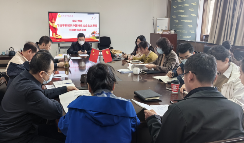 在正心楼二层资料室召开学习贯彻习近平新时代中国特色社会主义思想主题教育动员会暨理论中心组(扩大)学习会,对学院主题教育各项工作作出全面部署。会议由学院党委书记李建梅主持。学院党委委员、院长助理、党支部书记、教研室主任、科级干部、行政干部、学生代表共30人参加会议。