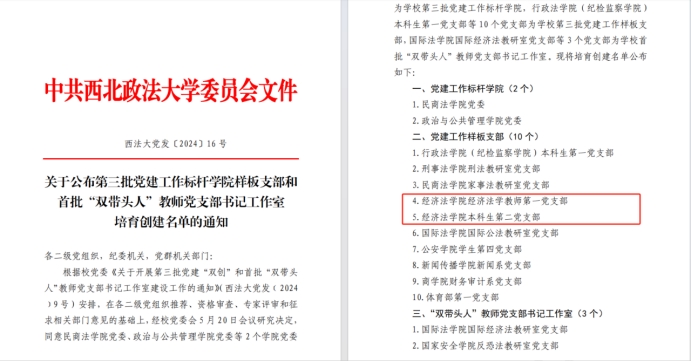 经济法学教师第一党支部、本科生第二党支部2个支部入选“样板支部”培育创建单位。