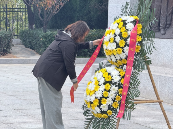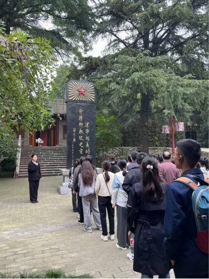 在渭华起义纪念馆,师生党员们瞻仰了革命烈士纪念碑,集体敬献花篮,重温入党誓词。党委书记李建梅代表全体党员整理花篮缎带,带领同志们向烈士鞠躬致敬,表达对先烈们的深切缅怀。