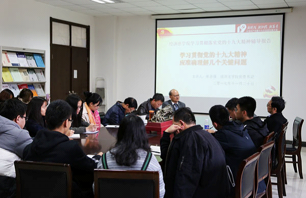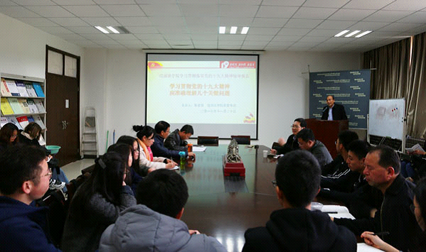 11月17日下午,院党委在长安校区正心楼二楼英超直播88 资料室召开中心组扩大会议。院党政领导、党委委员、党支部书记、全体辅导员、行政管理人员和师生代表参加了会议。院党委书记张志强作十九大报告学习的辅导。