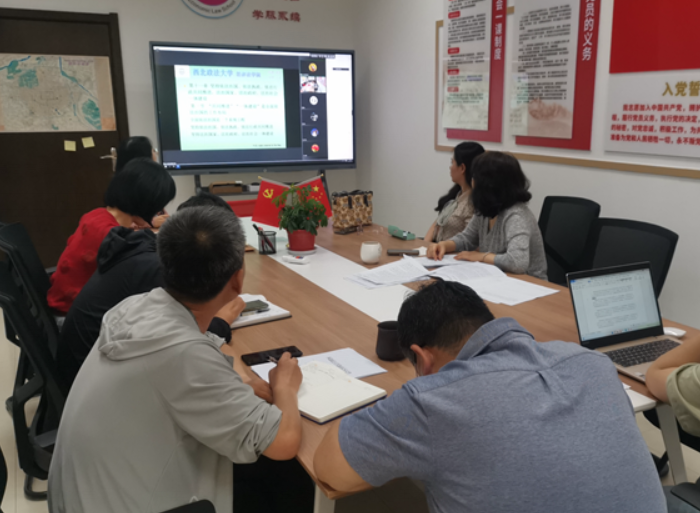 在政治理论学习环节,与会人员集体学习了《中共西北政法大学委员会 2022年教职工政治理论学习安排》《中共西北政法大学委员会“第一议题”学习制度》,知识产权法党支部书记孙栋副教授还专题讲授了《习近平法治思想概论》第十一至十三章的重点内容。