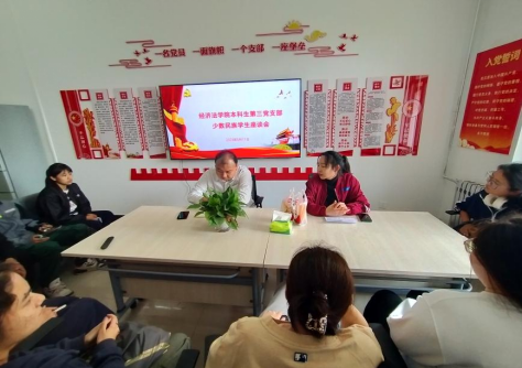 本科生第三党支部在14号学生公寓楼“一站式”社区工作室召开少数民族交流座谈会。学校少数民族学生辅导员、国家安全学院辅导员王真老师和学院2022级少数民族同学参加交流座谈,党支部书记张兴浩主持会议。