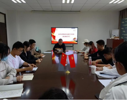 本科生第三党支部开展主题教育专题党课,学院党委副书记李慧军、支部成员和入党积极分子参加会议,会议由党支部书记张兴浩主持。