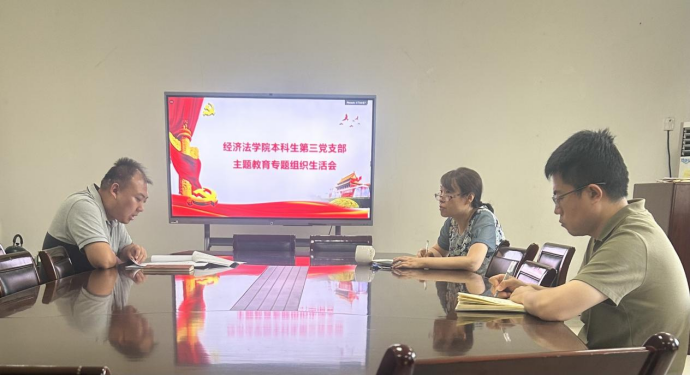 本科生第三党支部在学院资料室召开“学习贯彻习近平新时代中国特色社会主义思想主题教育”专题组织生活会。会议由党支部书记张兴浩主持,支部全体党员参加。