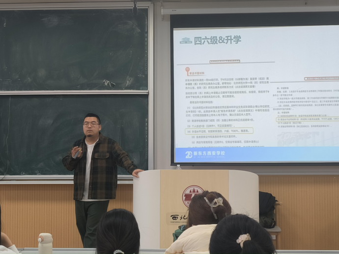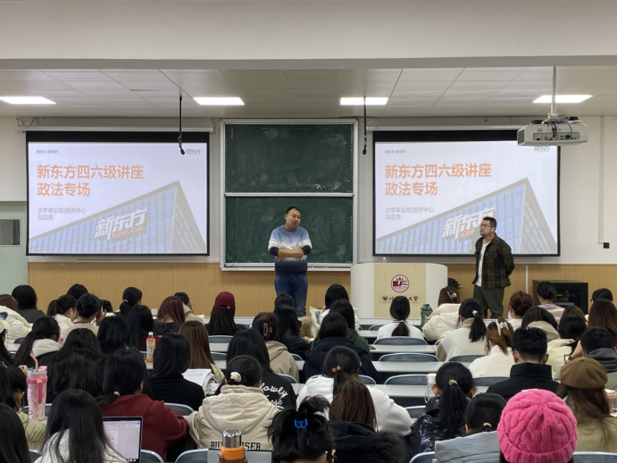 为迎接英语四六级考试,提高同学们备考能力。12月7日中午,经济法学院本科生第三党支部开展英语四六级备考指导活动。本次活动邀请到新东方马冠男老师为同学们进行四六级考试知识宣讲,活动由党支部书记张兴浩主持,2022级全体学生参加。