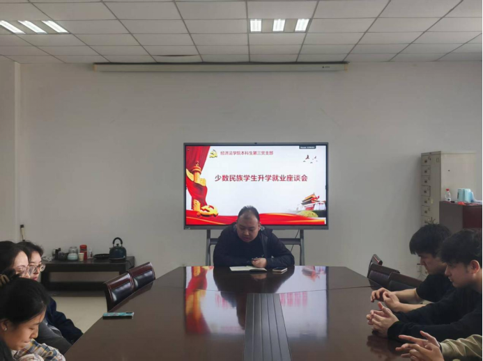 本科生第三党支部在学院资料室组织召开少数民族学生升学就业座谈会。会议由支部书记张兴浩主持,2022级少数民族学生参加。
