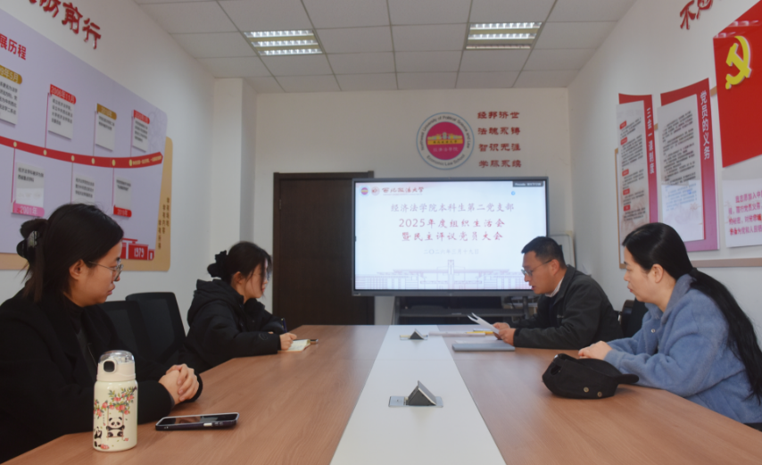 (知识产权学院)本科生第二党支部在长安校区召开2025年度组织生活会暨民主评议党员大会。学院党委委员郑艳馨到会指导,支部全体党员参加。会议由党支部书记李冬冬主持。