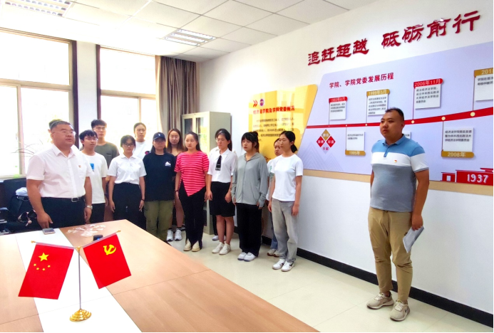 本科生第一党支部在学院党员活动室组织新发展党员开展入党宣誓仪式。本次会议由张兴浩老师主持。
