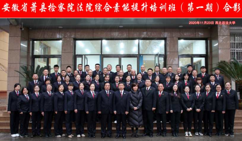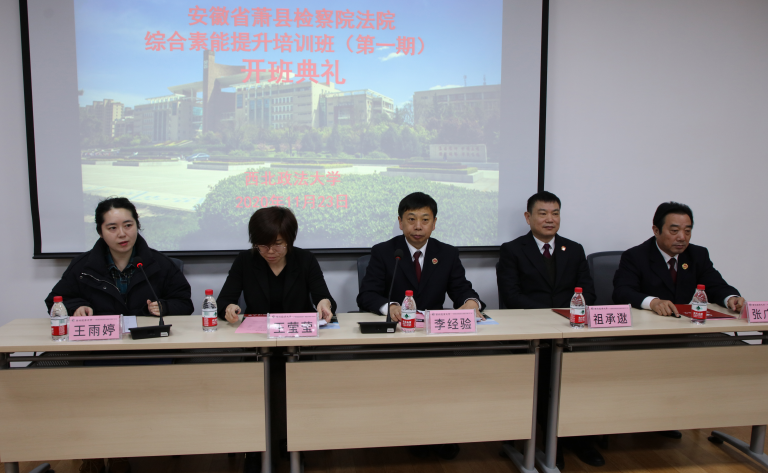 和安徽省萧县检察院法院合作举办的安徽省萧县检察院法院综合素能提升培训班(第一期)在我校雁塔校区1306教室举行。萧县人民检察院党组书记、检察长李经验,萧县人民法院党组副书记、副院长祖承逖、萧县人民检察院党组成员、副检察长张广济,西北政法大学英超直播88