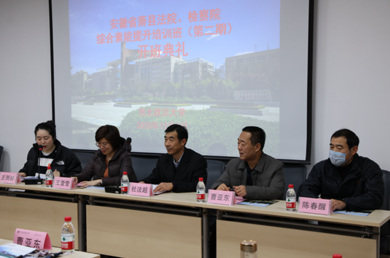 2020年12月3日,经过前期的精心筹备,安徽省萧县法院、检察院综合素能提升培训班(第二期)在我校雁塔校区1306教室举行。萧县人民法院党组书记、院长杜法超,萧县人民法院副院长曹亚东,萧县人民检察院纪检组长陈春醒,西北政法大学英超直播88 副院长王莹莹及来自萧县法院、检察院的51名学员出席了此次开学典礼。开班典礼由西北政法大学英超直播88 办公室主任王雨婷主持。