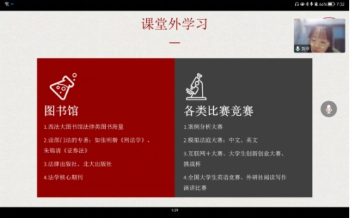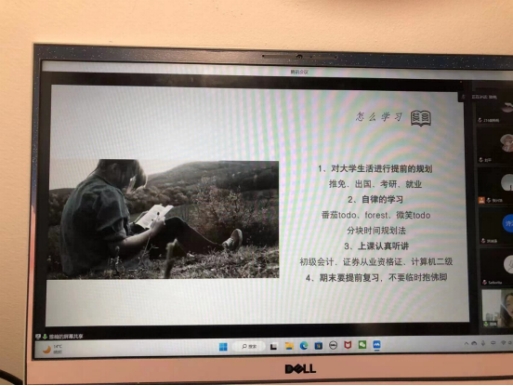 现就读于山东大学的刘平首先分享交流经验,她从专业学习、英语学习、实习实践和学习工具分享四方面进行分享,并鼓励2022级新生多进行课外学习和实践实习活动,并且推荐了许多自己在日常学习过程中使用的app和公众号。