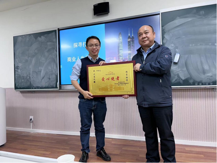 罗绍元从“我是谁?”、“怎么更好地度过一生?”、“为什么要从商?”和“怎么从商?”四个方面与同学们进行交流分享。他首先回顾了个人的成长经历和创业历程,从小镇青年到如今的跨国公司总经理,依靠的是一以贯之的坚持、不愿懈怠的奋进和风口掘金的把握。他着重强调应持续学习,多借鉴多思考。充满磨难的少年时期和求学生活让他对行动和机遇有格外深刻的理解。他认为最好的时机永远在当下,哪怕从零开始,不断积累,终会有触及门槛的一天。