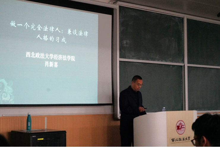 肖新喜副院长最后对培养法律人格进行重点介绍,他提出法律人格的定位是“俗人中的圣人”,法律人要用理性主义对待事情,要树立法律信仰,“法律必须被信仰,否则就形同虚设”。