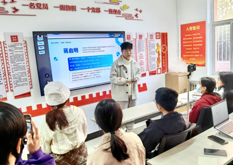 蒋启明以自己参加“互联网+”比赛、大学生创新创业比赛为切入点,向大家分享了科创类比赛的注意事项,对如何精准选题、寻找合适的队友以及计划书的撰写要求进行了分享。“大家积极在选题上、宣传方式上进行创新,但同时更要注意课题的实践性与可行性。”