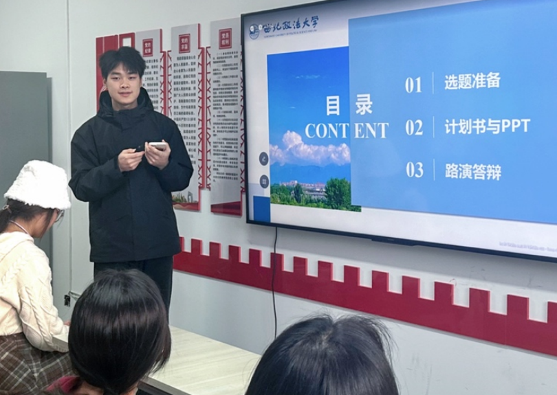 “参加创赛会带来许多收获,不仅可以突破自我,还收获了可贵友谊,结交了一群优秀的志同道合的人。”赵仕坤结合“互联网+”评审规则与自身的参赛经历经验,为同学们分享了如何进行创赛的选题、计划书的构成、答辩PPT制作以及和路演答辩的要点。