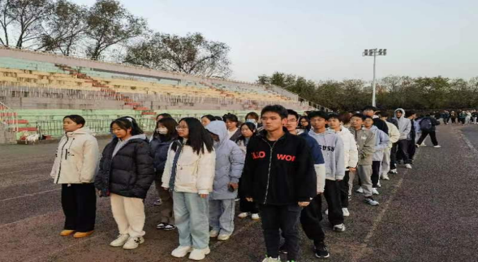为提高同学们的身体素质,展现当代大学生的精神风貌,7班的同学们开展了晨跑活动。7班全体同学参与其中,在红白跑道上留下自己的足迹,在晨光中感受运动的魅力。