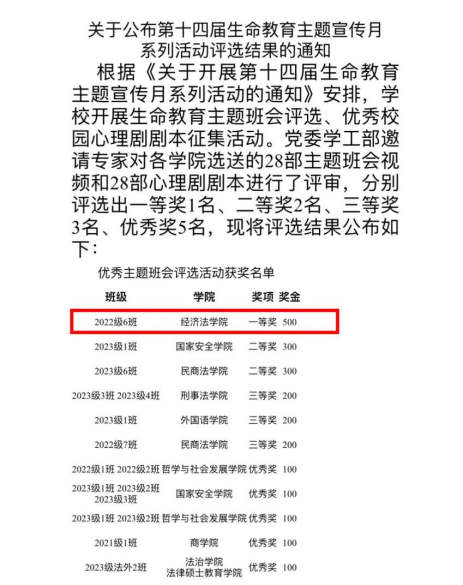2022级6班荣获一等奖。