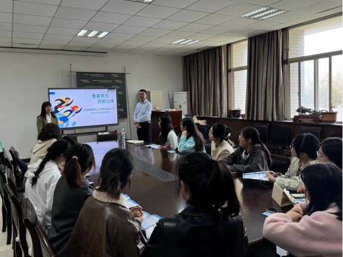 最后,青海省烟草专卖局(公司)窦海宁、于亚柳一行为同学们做招聘宣讲,介绍了公司的基本情况与人才岗位招聘需求,并解答同学们的提问。
