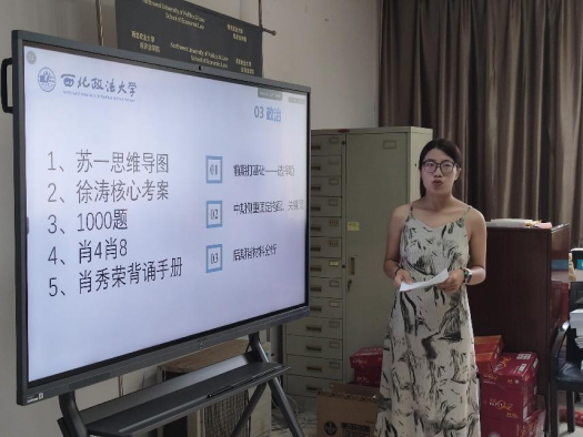 张帆同学以406的高分成功考取我校刑事法学院刑法学专业2024年硕士研究生。她在分享会中和同学们重点分享了自己在考研政治和专业课学习上的技巧等经验。“以前期打基础—选择题,中期侧重固定搭配、关键词,后期背材料分析”的步骤来学习政治,同时还分享了相关的书籍供大家参考或购买;专业课方面,她分享专业课一和专业课二的分配时间和前后顺序,以及时长、行动、背书方面的规划。最后,她强调要注意心态的调整和适当的休息。