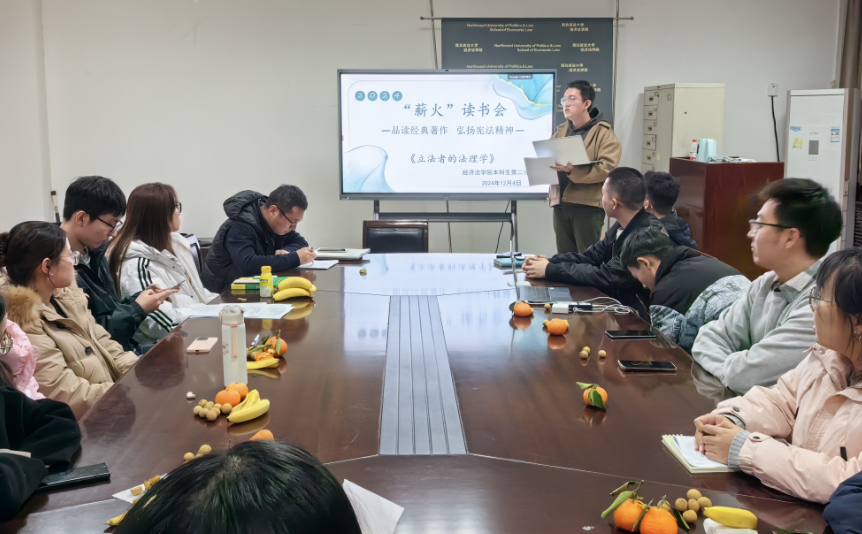 (知识产权学院)在长安校区正心楼资料室举办“品读经典著作,弘扬宪法精神”主题读书分享会。《评律论法》编辑部责任编辑虎彤同学分享宪法学经典书目《立法者的法理学》并做主题演讲。读书会由“薪火”读书会指导教师李冬冬主持,本科生第二党支部成员20余人参加。