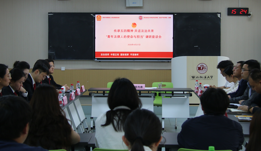 五四青年节到来之际,为加强青年学子的法治思想引领与理想信念教育,助力青年学子明晰职业方向,筑牢法治信仰,涵养品格修为。4月27日下午,英超直播88 (知识产权学院)团委联合西安市雁塔区人民法院团支部,以“传承五四精神,共话法治未来”为主题,共同举办“青年法律人的使命与担当”专题调研座谈会,并签署结对子共建协议,依托法院一线法官实务经验分享,推动协同育人工作走深走实。学院党委副书记李恒、雁塔区人民法院审判管理办公室主任、团支部书记王丹,青年法官干警,英超联赛88直播 青年学子,共50余人参加。座谈会由学院团委书记李冬冬主持。