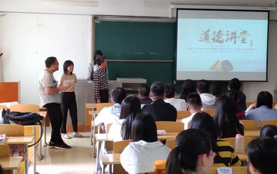 经济法2016级2班团支部召开了名为“道德大讲堂”的道德宣传类主题班会,圆满完成且达到预期效果与目的。首先,主讲人结合PPT向大家介绍了这次班会的主题与大致内容,让大家对本次班会有个初步了解。随后进入了“身边的好人好事”环节。何秀鸿同学积极发言,向大家介绍了身边的好人好事,道德模范。同学们十分认同并赞不绝口。