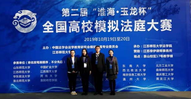 2019年10月19日至20日,由中国法学会法学教育研究会模拟法庭专业委员会和江苏师范大学共同主办的第二届“淮海·玉龙杯”全国高校模拟法庭大赛在江苏师范大学举办。大赛分为模拟庭审比赛和法律文书比赛两部分,模拟庭审比赛分为法官组和代理人组两个组别。共有东南大学、湖南大学、中国矿业大学、中国政法大学、华东政法大学、中国海洋大学、西北政法大学等来自全国24所高校的32支队伍参加。英超联赛88直播 本科生张译元同学、研究生罗兰语、曾珍同学与民商法学院本科生徐源宏同学组队参加。