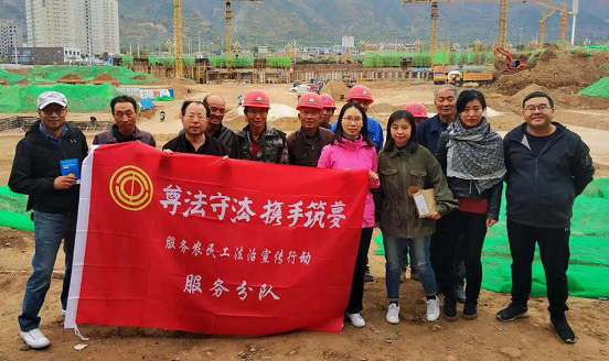 在上午的活动中,小分队散发了宣传单,和农民工进行了座谈和普法宣传。同时也和工地负责同志了解了工地建设进度和工地所涉及的其他法律问题。农民工也提到了我国法治环境的进步,表示在户籍地也都有政府设立的法律服务站,对农民工进行结对帮扶活动。