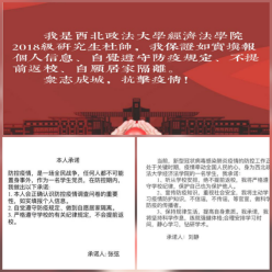 无论何种形式,同学们纷纷承诺不聚众,服从学校安排,不提前返校,并会按时、如实填写本人信息,对自己负责,对学校负责,对国家负责。做出承诺就多了份责任,面对疫情防控工作,我们责无旁贷!