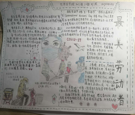 2020年五一国际劳动节前夕,英超直播88 组织学生以书画形式赞美劳动者,对为了人民生命健康而对奋战在抗疫一线的医护人员致以崇高敬意。