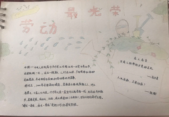 此次主题活动的开展,凝聚着英超直播88 全体同学对劳动者的敬意。同学们在一张张白纸上,书写、描绘自己心目中的最美劳动者。同学们纷纷表示,作为一名大学生,要培养劳动感情,养成劳动习惯,珍惜劳动成果,积极参加社会实践活动,践行“西迁精神”,为祖国建设舔砖加瓦。(2017级3班蔡捷供稿)