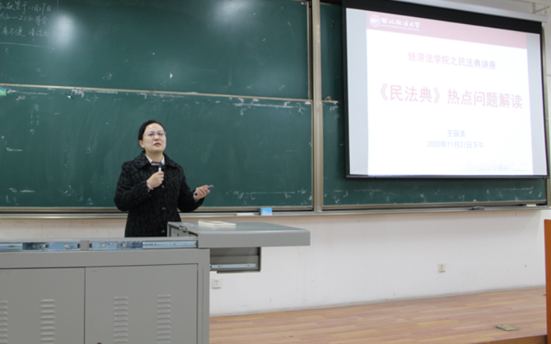 颁奖仪式后,民商法学院王丽美副教授为同学们讲授了《<民法典>热点问题解读》专题讲座。王丽美老师介绍了我国民法典的地位、价值,并对《民法典》热点问题进行详细解读。通过王丽美老师的讲解,同学们对《民法典》的热点内容、特色规定有了清晰的认识和理解。