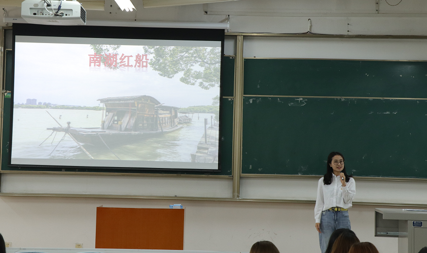 李红月以“南湖红船,风雨起航”为中心讲述了中国共产党的产生与发展历程。她以中国共产党第一次全国代表大会的举办为例,详细介绍了红船精神的内涵与意义,画舫红船最终成为中国革命源头的象征。红船精神是教育当代中国共产党人的无价瑰宝,是用以提高党的执政能力,始终保持党的先进性的宝贵资源和精神财富。