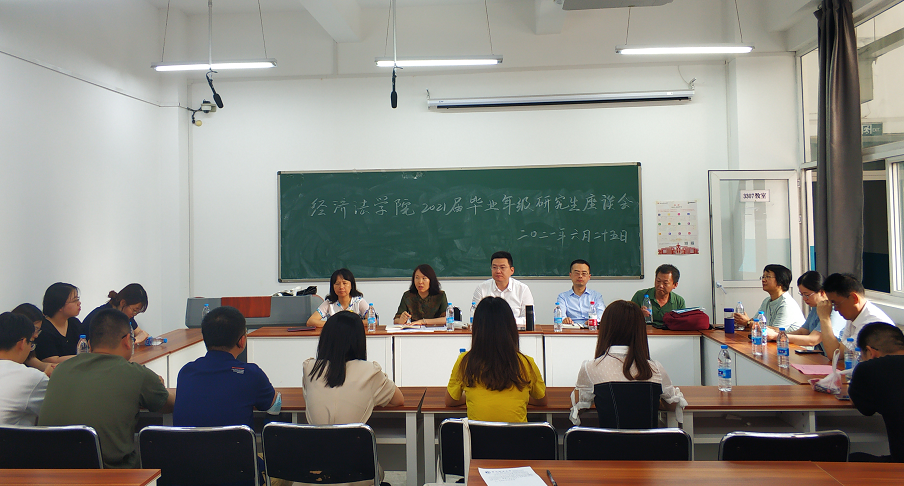与会毕业生代表依次分享了各自在校期间的学习经历、就业状况以及未来打算。学院党委副书记李慧军在会上通报了目前2021届毕业年级研究生的详细就业情况,院长倪楠、副院长薛亮、经济法教研室主任郑艳馨及导师代表傅瑜、徐芳宁、席晓娟、郝少英等也纷纷表达了对2021届毕业生在就业选择与职业发展方面的建议和体会,并希望大家结合自身实际情况,及时调整就业心理预期与状态,树立正确的就业观与职业观,为自己的职业发展打下坚实的基础。