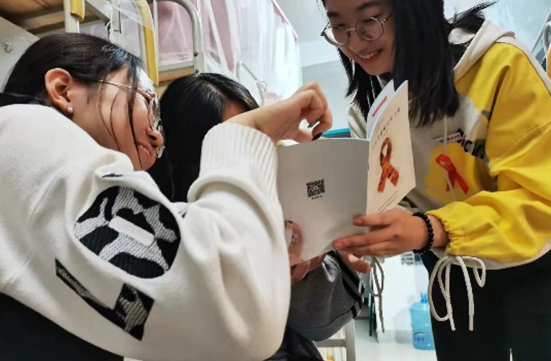学生志愿者们以知识讲解、宿舍科普和鼓励实践活动为主。各班同学在学生志愿者的组织下,学习了具体、系统的关于艾滋病防治的知识,并且就同学们的疑问进行了详细的解答。此外,学生志愿者借助学校发放的防艾资料包,在班级普及了青艾盒的使用方法,并且鼓励大家在食堂门口、超市门口等地,给校内同学分发防艾宣传单,提醒更多同学了解并且掌握防艾知识。
