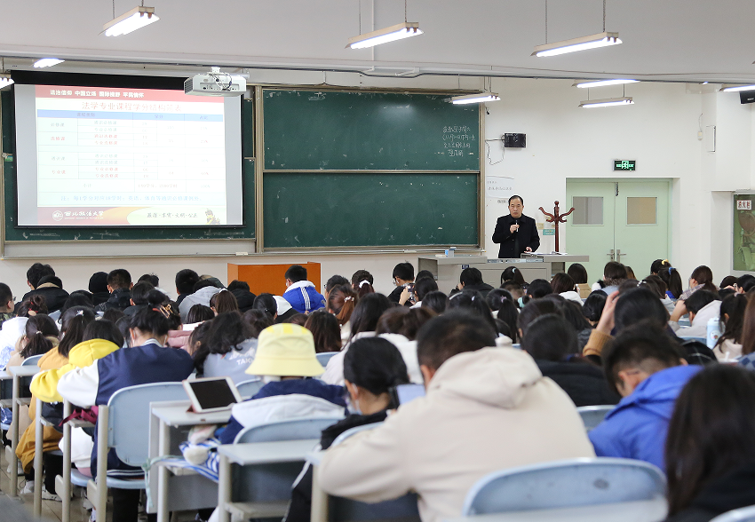 为促进学院本科教育教学工作高效开展,帮助同学们提前了解并做好四年课程规划,全面提高英超联赛88直播 人才培养质量,11月23日中午,英超直播88 邀请我校教务处副处长张天栋为2021级全体新生做《法学本科新生学业规划》专题讲座。讲座由英超直播88 副院长薛亮主持。