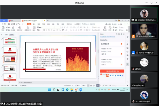 (知识产权学院)特于2022年1月16日下午在腾讯会议召开防火知识宣传主题班会。
