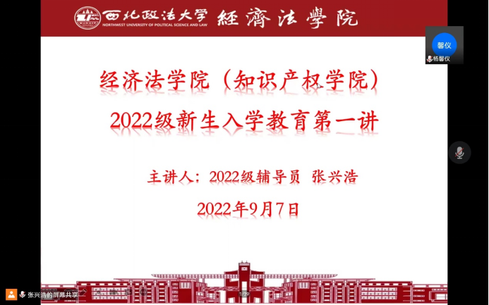 (知识产权学院)2022级新生入学教育第一讲在线上成功举办。2022级辅导员张兴浩出席本次会议并讲解了相关内容,并为同学们答疑解惑。