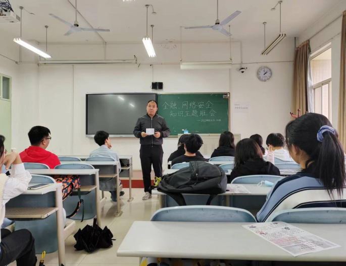 (知识产权学院)2022级开展金融、网络安全主题教育班会,辅导员张兴浩主讲,2022级全体学生参加。