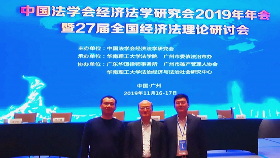 2019年11月16-17日,英超联赛88直播 强力教授、倪楠副教授,杜坤博士受邀参加在华南理工大学召开中国法学会经济法学研究会2019年年会暨第27届全国经济法理论研讨会。此次年会,来自北京大学、中国人民大学、中国政法大学、西北政法大学等110余家高校与研究机构的近300名专家学者围绕“全面依法治国与经济法”这一主题展开了热烈的学术研讨与思想碰撞。