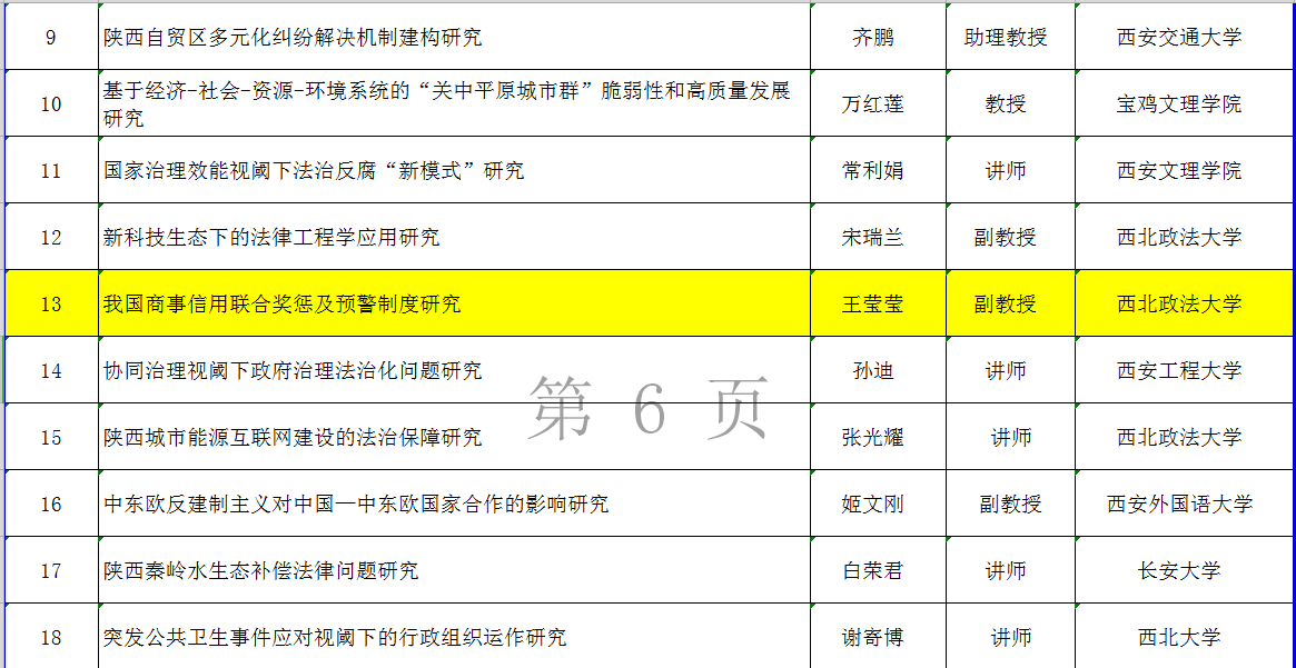 近日,陕西省哲学社会科学工作办公室公布了2020年陕西省社会科学基金年度项目拟立项项目名单,英超联赛88直播 王莹莹副教授主持的《我国商事信用联合奖惩及预警制度研究》课题获得法学学科立项。
