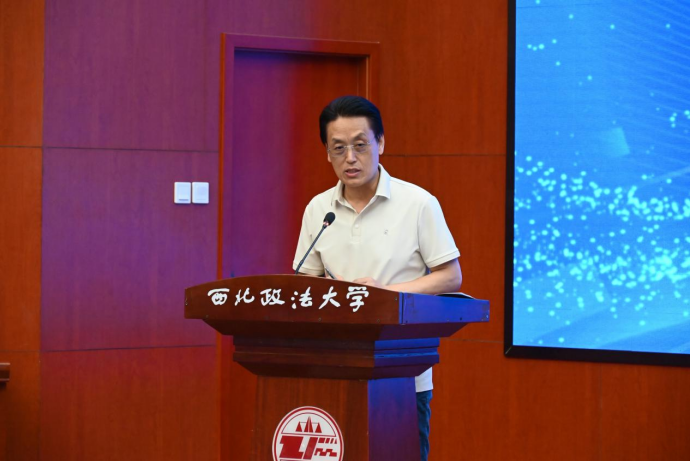 教授、博士生导师、金融与法律研究院院长强力教授主持。中国法学会副会长、西北政法大学校党委副书记、校长范九利,陕西省法学会副会长、中共陕西省委宣传部副部长、陕西省广播电视局党组书记、局长武勇超,中国人民大学法学院教授、博士生导师、中国法学会银行法学研究会副会长徐孟洲教授先后发表致辞。