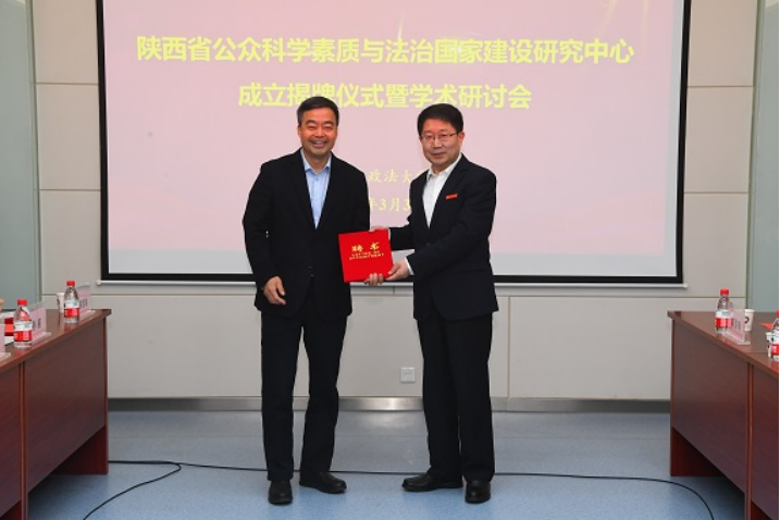 丁德科和孙国华共同为“陕西省公众科学素质与法治国家建设研究中心学术委员会委员”颁发聘书