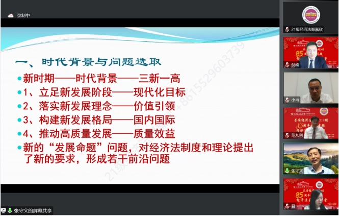 在主题演讲阶段,张守文教授首先对西北政法大学的八十五周年华诞表示热烈祝贺,并表示后续将加强与我校在学科建设和人才培养方面的交流合作。