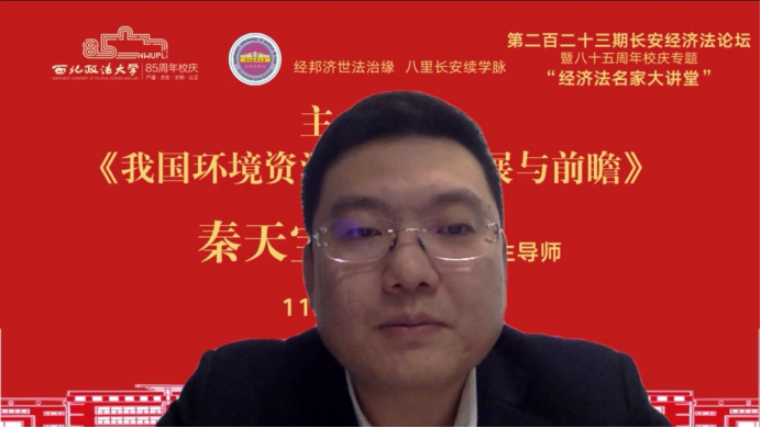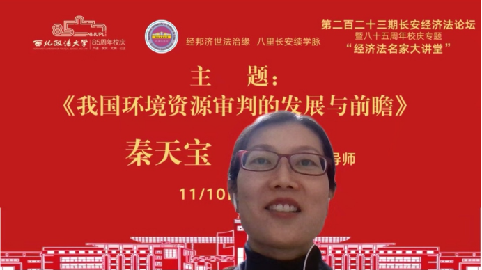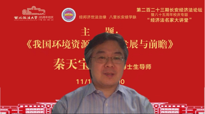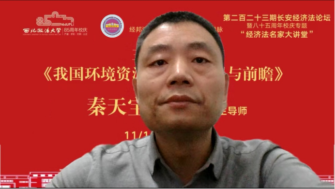 2022年11月10日晚,由西北政法大学主办、经济法(知识产权)学院承办的长安经济法论坛第二百二十三期暨八十五周年校庆专题讲座在线上举行。本期论坛邀请武汉大学法学院秦天宝教授,做题为《我国环境资源审判的发展与前瞻》的讲座。讲座由英超直播88