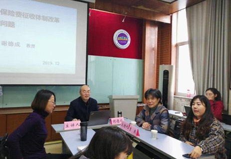 12月2日下午,中国社会法学研究会常务理事、陕西省法学会常务理事、陕西省人民政府法律顾问、西北政法大学社会学研究所所长谢德成教授做客社会法名家论坛,于雁塔校区行政楼经济法资料室讲授有关“社会保险费征收体制改革中的法律问题”。本次讲座由曹燕教授主持,我校多名师生参加了此次讲座。