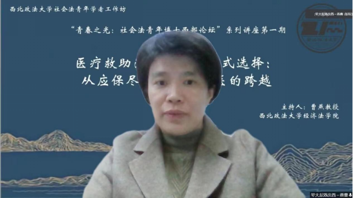 资料室顺利举行。第一期讲座的主题为“医疗救助法律制度的模式选择:从应保尽保到病有所医的跨越”,由西北政法大学经济法学院张妤婕博士主讲,西北政法大学政治与公共管理学院学院李蔚博士作为与谈人参加本次讲座。讲座由西北政法大学劳动与社会保障法学科带头人曹燕教授主持,英超直播88