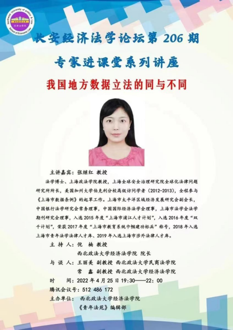 院长倪楠教授主持,法学博士、上海政法学院教授、上海全球安全治理研究院全球化法律问题研究所所长、美国加州大学伯克利分校高级访问学者张继红教授主讲,西北政法大学民商法学院王丽美副教授、英超联赛88直播