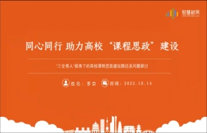 邀请智慧树平台工作人员就课程思政教学体系设计、课程设置、教学方式等进行讲解,通过典型案例解读,引导授课教师在日常教学过程中,寻找合适切入点将课程思政与“线上线下”教学、一流课程建设相结合,真正帮助学院教师充分理解课程思政,实现知识传授、能力培养、价值塑造三位一体的教学目标。
