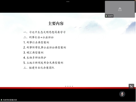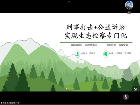 讲座中,巩树芳主任从习近平生态文明思想的解读、刑事打击+公益诉讼典型案例讲解、组建专业化办案团队对实现生态保护的重要性三个方面进行了认真细致的讲解,较为系统地对陕西省人民检察院西安铁路运输分院近年来在实现生态检察专门化方面的探索和经验进行了梳理和介绍,对于同学们深化课堂知识的运用、开拓眼界、激发学习兴趣和增长实务能力起到了很好的促进作用。